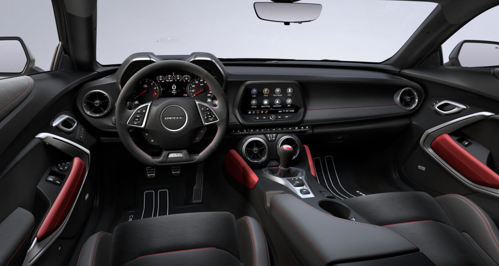 Inside, the transformation is even more intense. The analog gauges are gone—replaced by a 12.3-inch digital driver display and a massive 15-inch floating infotainment screen. Seating is more performance-oriented, yet far more comfortable than past iterations. We see Alcantara and contrast-stitched leather throughout the cabin, along with ambient lighting that responds to drive modes. Chevrolet has finally given the Camaro a cabin that feels premium, futuristic, and competitive with Euro rivals in both tech and materials.