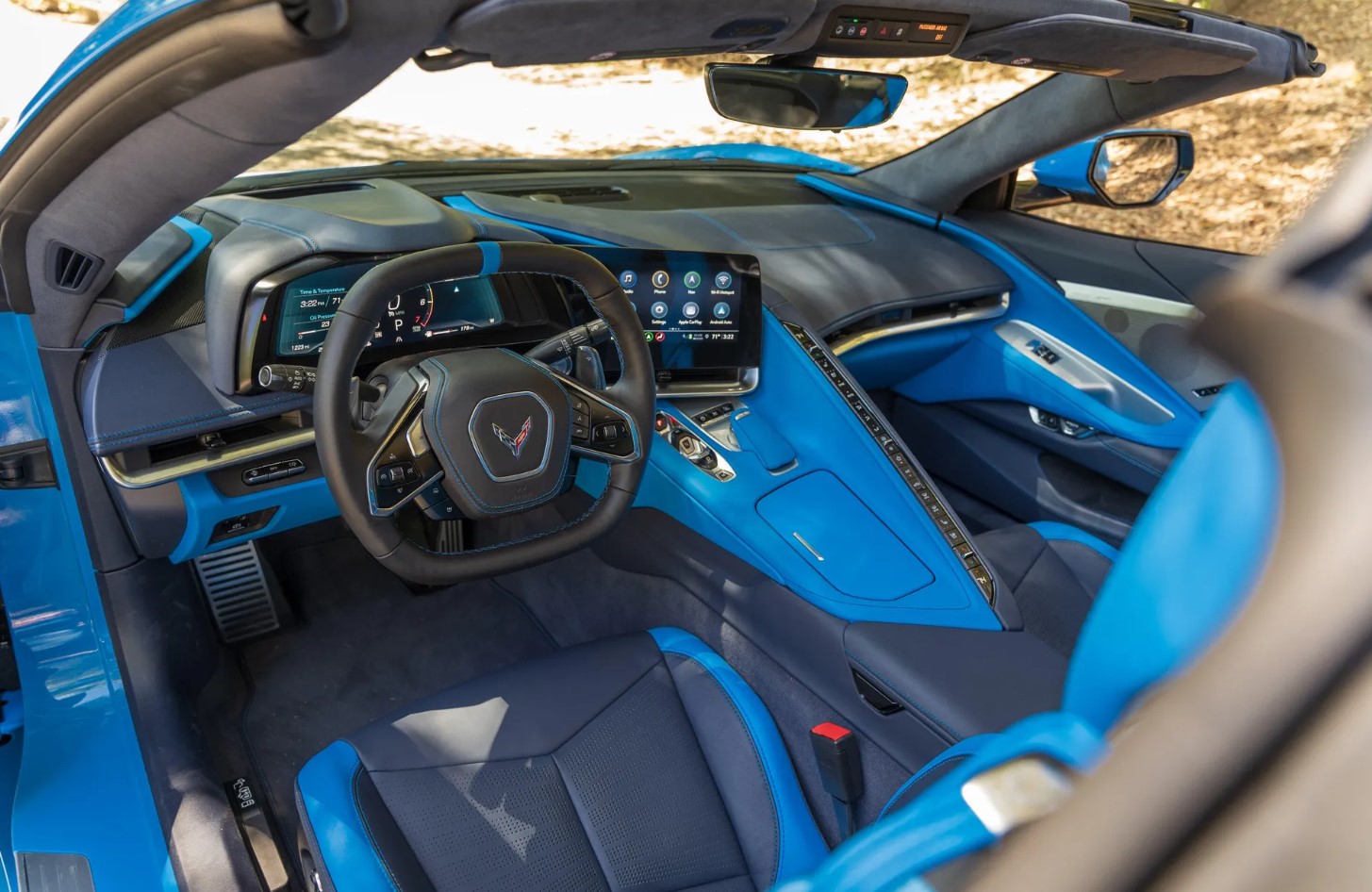 The bodywork has carefully sculpted lines and curves that enhance the vehicle’s aerodynamic efficiency in addition to improving its attractiveness. The design has a retractable top to provide a smooth transition between coupe and convertible modes of operation. The LED lighting elements that give the automobile a feeling of modernity allow the Corvette Stingray to shine out even in the dark.