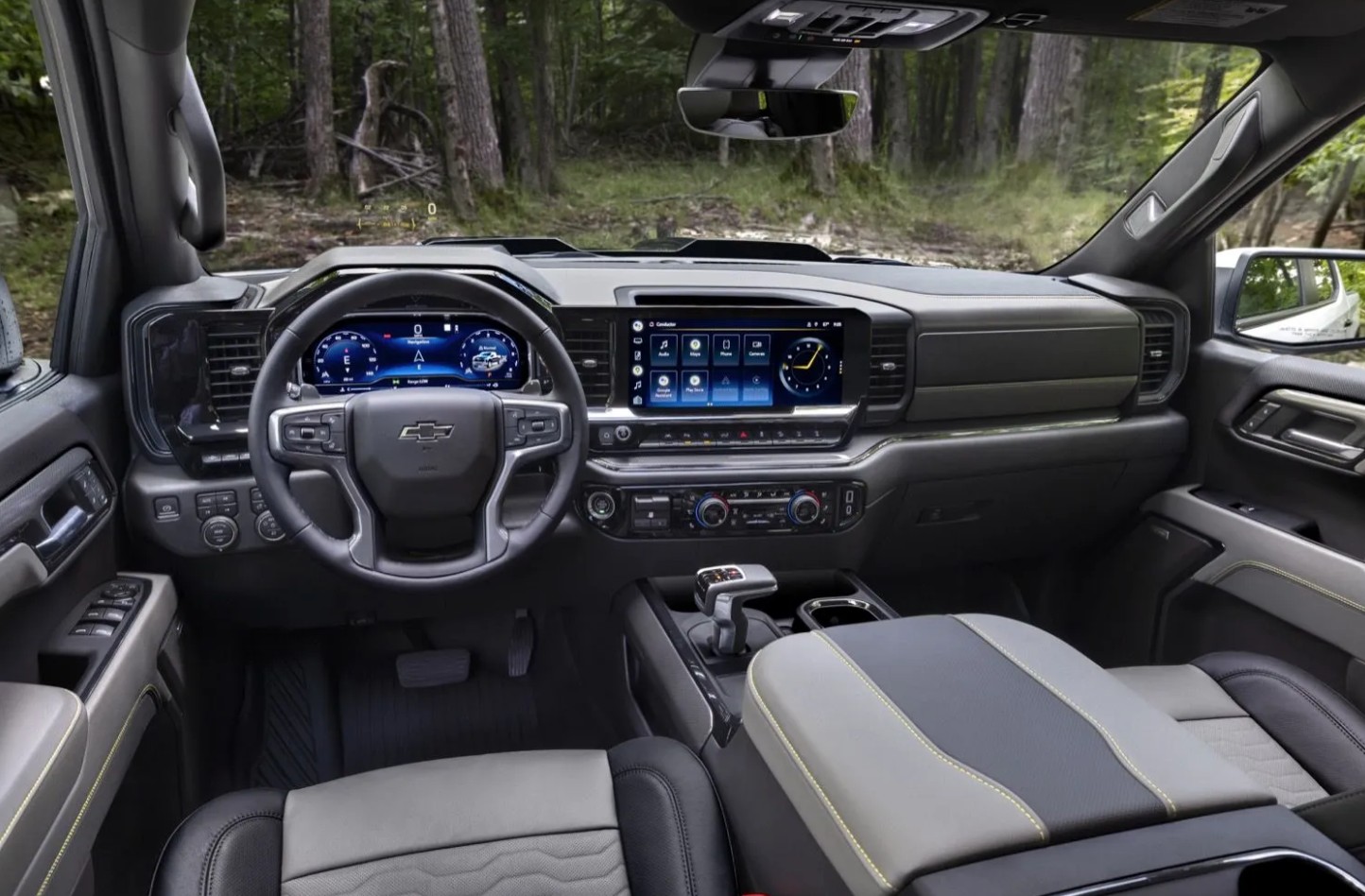 Stepping into the cabin reveals a fusion of rugged functionality and upscale comfort. Chevrolet has outfitted the ZR2 with durable yet refined materials, such as soft-touch panels, leather-trimmed seating, and available suede inserts. Red stitching and ZR2 badging further set the interior apart from standard Silverado trims. The dashboard is dominated by a massive 13.4-inch touchscreen with the latest Chevrolet Infotainment system, paired with a 12.3-inch fully digital driver display. Off-road performance pages display pitch, roll, tire pressure, and suspension status in real-time, ensuring drivers have essential data at their fingertips.