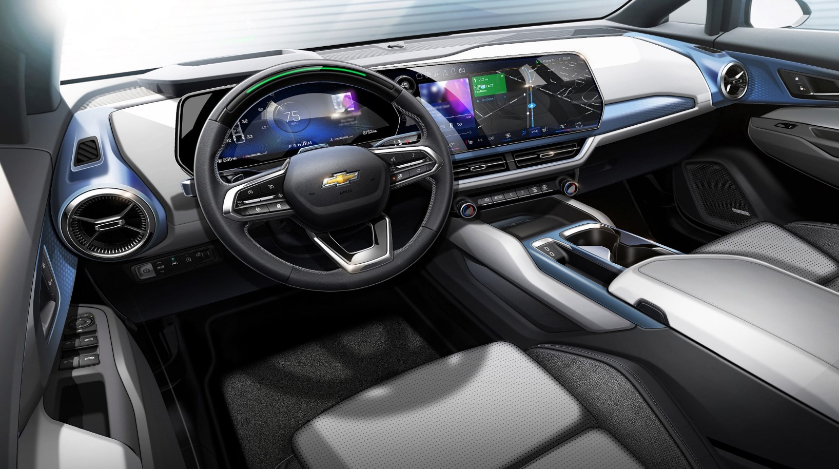 The inside of the Equinox EV is designed with space and comfort in mind. Passengers enjoy more legroom and a lighter, airier atmosphere thanks to the electric engine’s ability to create a level floor. Ergonomic design informed the construction of these chairs, which come with a choice of upholstery options that include anything from eco-friendly fabrics to premium leather.